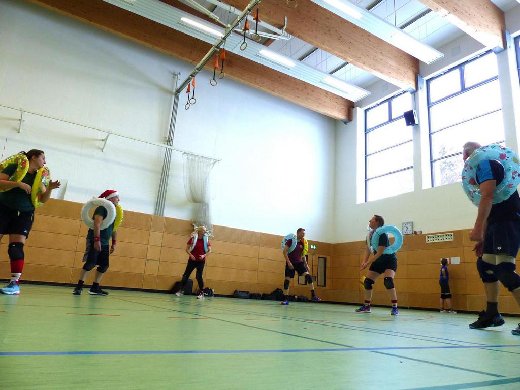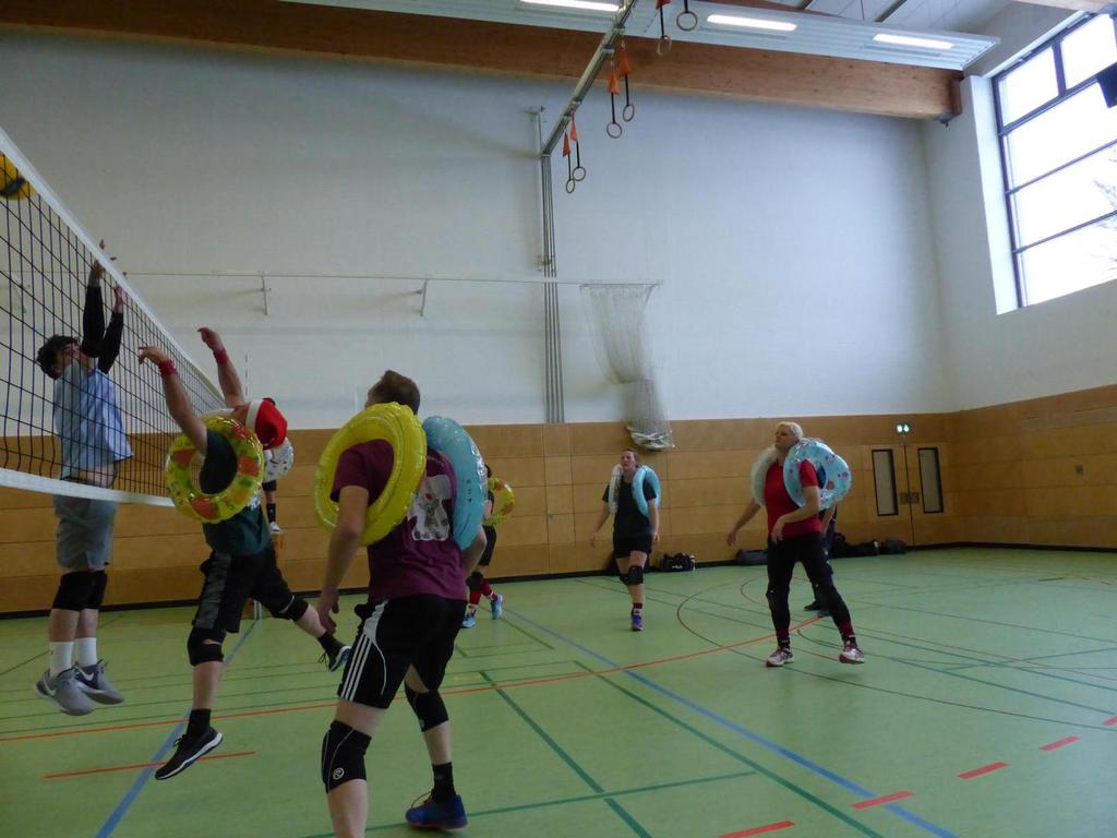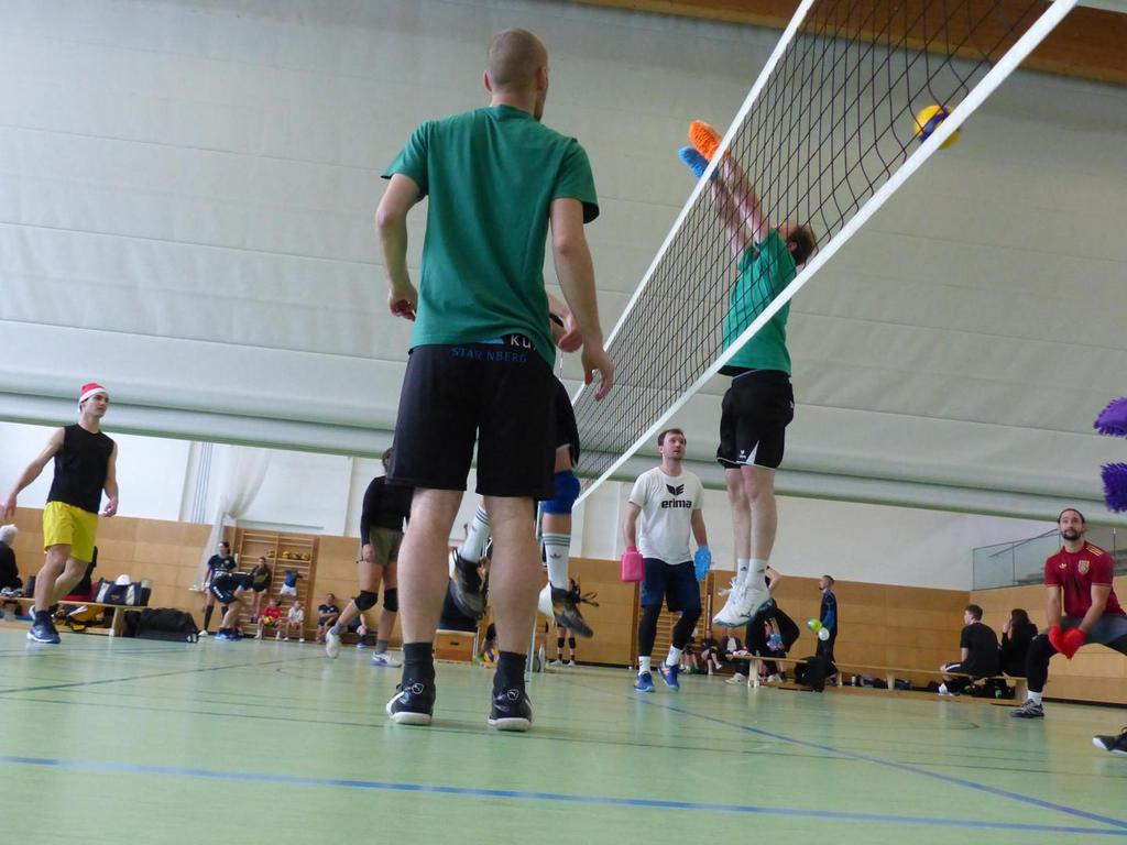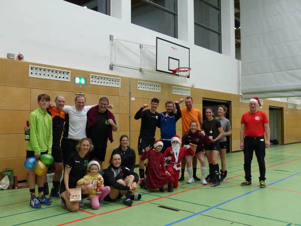 Auch dieses Jahr haben wir wieder mit 12 Mannschaften ein schönes Turnier erleben dürfen. Der Spaß stand wieder an erster Stelle, vor allem in der Vorrunde wo viele Mannschaften mit Handycap spielen durften/mussten. Die Hauptrunde hat dann die Mannschaften mit gleichem Leistungsniveau gefordert. Besonders spannend war das letzte Spiel der Hauptrunde in der Gruppe der Gruppenersten aus der Vorrunde, was zwischen den Renntieren und den Allgäu finest 26:24 und 23:25 ausging. Da zwischen den beiden Mannschafften dann Satz und Punktgleichheit herrschte duften Sie sich den ersten Platz teilen. Danke an alle Teilnehmer für die Begeisterung und die schönen, fairen Spiele. Und Danke auch an alle Helfer, ohne die so eine Veranstaltung nicht möglich wäre. Wir freuen uns auf ein Wiedersehen im nächsten Jahr.